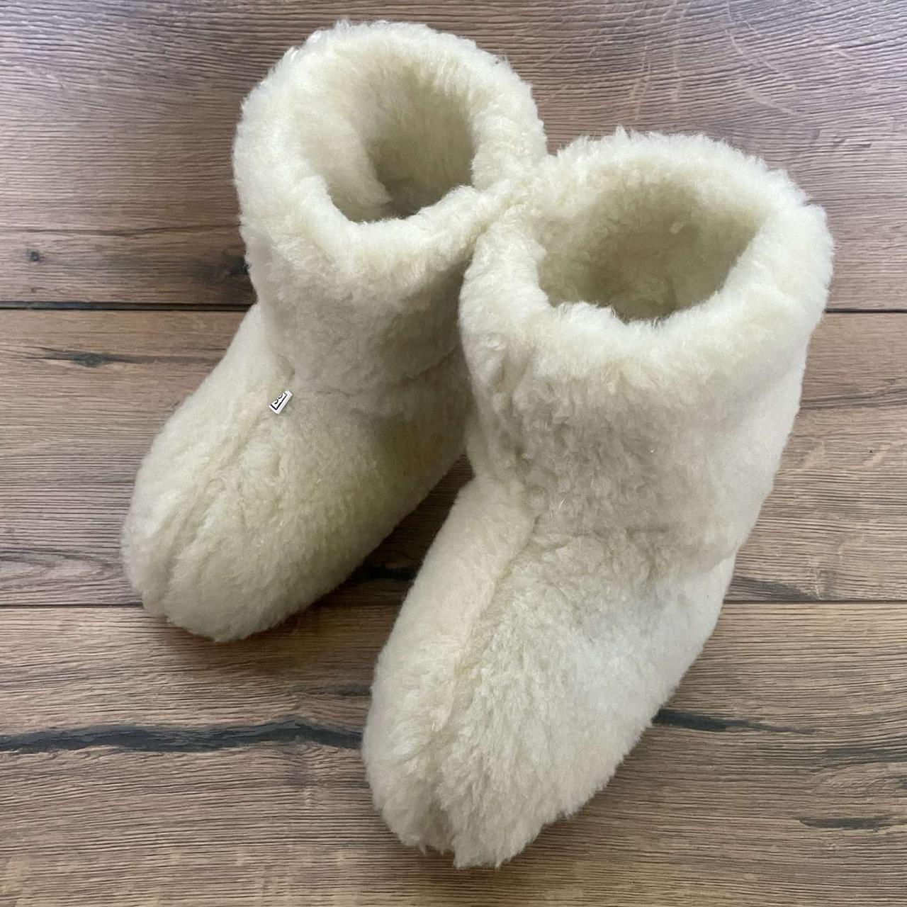 Чуні з овечої вовни. Теплі, двошарові, м'які.Дуже зручні і комфортні. Дуже зручне, практичне домашнє взуття і виглядають дуже красиво. Завдяки особливостям овечої вовни відбувається циркуляція повітря і нога в них не потіє.